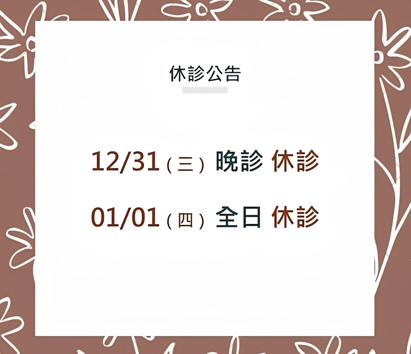 【2025/2026 跨年及元旦休診公告】