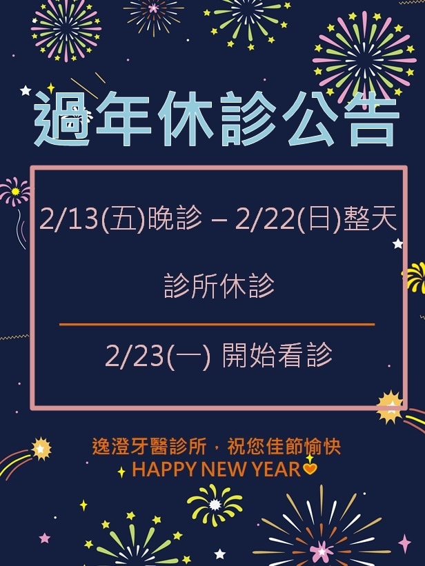 逸澄牙醫診所於過年期間調整看診時間