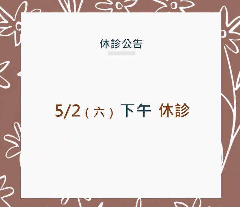 2/13(五)晚診起至 2/22(日)全天休診。